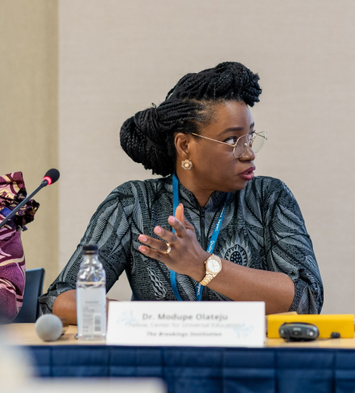 Modupe (Mo) Olateju is a fellow with the Center for Universal Education in the Global Economy and Development program at Brookings. She is an international development specialist with expertise in public-private partnership in education with additional research interests in education innovation and foundational learning. She established The Education Partnership (TEP) Centre and led the organization’s pioneering work in applied education research in Nigeria and across Africa for 10 years.